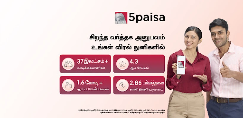 5paisa செயலி மூலம் பங்குச் சந்தை மற்றும் மியூச்சுவல் ஃபண்டுகளில் முதலீடு செய்ய விரும்புபவர்களுக்கான விரிவான தீர்வு இது. பங்குகள், டெரிவேட்டிவ்கள், கமாடிட்டிகள், IPO-க்கள் உள்ளிட்ட பல்வேறு முதலீட்டு விருப்பங்களை எளிதாக அணுகலாம். அனுபவம் வாய்ந்தவர்கள் முதல் புதிய முதலீட்டாளர்கள் வரை அனைவருக்கும் உகந்த தளம்.