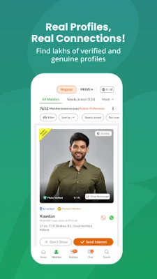 உங்கள் திருமணத்திற்கான சுயவிவரத்தை உருவாக்குவது பெங்காலி மேட்ரிமோனியில் மிக எளிது. இலவசப் பதிவு மூலம், நீங்கள் லட்சக்கணக்கான பொருத்தமான சுயவிவரங்களை ஆராயலாம். எங்களின் சக்திவாய்ந்த MIMA™ செயற்கை நுண்ணறிவு சார்ந்த அல்காரிதம், உங்களது விருப்பங்களுக்கேற்ப மிகவும் துல்லியமான பரிந்துரைகளை வழங்குகிறது. புதிய பொருத்தங்கள் கிடைக்கும்போது, உங்கள் சுயவிவரத்தில் ஆர்வம் காட்டப்படும்போது, அல்லது உங்கள் விருப்பங்கள் குறித்து பதில் கிடைக்கும்போது, உடனடி அறிவிப்புகளை உங்கள் மொபைலில் பெறுவீர்கள். மேலும், நகரம், கல்வி, தொழில் மற்றும் இருப்பிடம் போன்ற பல்வேறு மேம்பட்ட வடிகட்டிகள் மூலம் உங்கள் விருப்பத்திற்கேற்ப துணையைத் தேர்வுசெய்யலாம்.