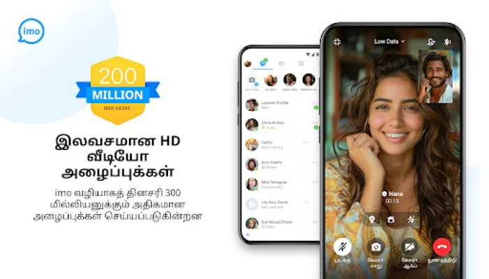 imo, ஒரு இலவச, எளிதான மற்றும் பாதுகாப்பான செயலி. உலகளவில் 200 மில்லியனுக்கும் அதிகமான மக்களுடன் சர்வதேச அழைப்புகள், செய்திகள் மற்றும் அரட்டைகளை தடையின்றி மேற்கொள்ள உதவுகிறது. முக்கிய தருணங்களைப் பகிர இது 62 மொழிகளில் புதுமையான தீர்வுகளை வழங்குகிறது.