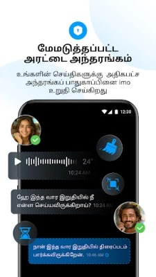 உங்கள் தனிப்பட்ட உரையாடல்களின் பாதுகாப்பிற்கு imo அதிக முன்னுரிமை அளிக்கிறது. எண்ட்-டு-எண்ட் மறைகுறியாக்கம், மறைந்துவிடக்கூடிய செய்திகள், ஸ்கிரீன் ஷீல்ட் மற்றும் தனிப்பட்ட அரட்டை போன்ற மேம்பட்ட அம்சங்களுடன், உங்கள் தகவல்கள் முழுமையாக பாதுகாக்கப்படுவதை imo உறுதி செய்கிறது. ஸ்கிரீன்ஷாட்கள், நகலெடுத்தல் அல்லது பகிர்தலைத் தடுப்பதன் மூலம் உங்கள் அந்தரங்கத்தை மேலும் மேம்படுத்தலாம். வெவ்வேறு மொழிகளில் பேசுபவர்களுடன் சவால்கள் இல்லாமல் தொடர்பு கொள்ளும் வகையில், imo உடனடி செய்தி மொழிபெயர்ப்பை வழங்குகிறது, உரையாடல்களை சரளமாக்குகிறது.