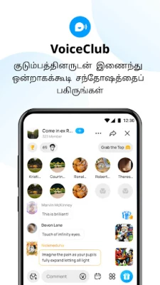 மேலும், எந்தவொரு கோப்பையும் அதன் அசல் தரத்துடன் எளிதாகப் பகிரலாம், அவை தானாகவே வகைப்படுத்தப்பட்டு, விரைவான அணுகலுக்கு உதவுகின்றன. ஒவ்வொரு கோப்பு பரிமாற்றமும் முழு மறைகுறியாக்கம் மூலம் பாதுகாக்கப்படுவதால், பாதுகாப்புக்கு உத்தரவாதம். VoiceClub அம்சத்தின் மூலம், குடும்பத்தினருடனும் நண்பர்களுடனும் ஒன்றுசேர்ந்து, அரட்டை அறைகளை உருவாக்கி, பல்வேறு திறமைப் போட்டிகள், உரையாடல்கள் மற்றும் விளையாட்டுகளை நடத்தலாம். imo மூலம் தொடர்புகளின் புதிய உலகத்தை அனுபவியுங்கள்.