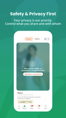 மேம்பட்ட அம்சங்களுக்கான பிரீமியம் உறுப்பினர் சேவையைப் பெற்று, உங்கள் துணையைத் தேடும் அனுபவத்தை மேலும் சிறப்பாக்குங்கள். பிரீமியம் உறுப்பினர்கள் பாதுகாப்பான உடனடி அரட்டை மற்றும் குரல் அழைப்பு வசதிகள் மூலம் எந்நேரமும், எங்கிருந்தும் பொருத்தங்களுடன் தொடர்பு கொள்ளலாம். கன்னட மேட்ரிமோனி "பிரைம்" மூலம் சரிபார்க்கப்பட்ட உண்மையான சுயவிவரங்களை அணுக முடியும், மேலும் பிரீமியம் உறுப்பினர்கள் பிரிவில் இடம்பெற்று சிறந்த பதில்களைப் பெறலாம். இருப்பிடம், கல்வி, ஜாதகம் போன்ற முழுமையான சுயவிவர விவரங்களை பிரீமியம் உறுப்பினர்கள் பார்க்கலாம். உங்கள் பாதுகாப்பிற்கும் தனியுரிமைக்கும் நாங்கள் முக்கியத்துவம் அளிக்கிறோம். உங்கள் புகைப்படங்கள், தொடர்பு விவரங்கள் மற்றும் சுயவிவரத்தை யார் பார்க்கலாம் என்பதை நீங்கள் முழுமையாகக் கட்டுப்படுத்தலாம். SecureConnect® அம்சம் மூலம் உங்கள் கைப்பேசி எண்ணைப் பகிராமல் துணையை அழைக்கும் வசதியும் உள்ளது. லிங்காயத், ஒக்கலிகா, பிராமணர், கௌடா போன்ற பல்வேறு கன்னட சமூகங்கள் மற்றும் இந்து, முஸ்லிம், கிறிஸ்தவ சமயங்களைச் சேர்ந்த துணைகளை பெங்களூரு, மைசூரு போன்ற நகரங்களிலும், அமெரிக்கா, இங்கிலாந்து போன்ற வெளிநாடுகளிலும் நீங்கள் தேடலாம். Matrimony.com குழுமம் மூலம் லட்சக்கணக்கான திருமணங்கள் வெற்றிகரமாக நடைபெற்றுள்ளன.