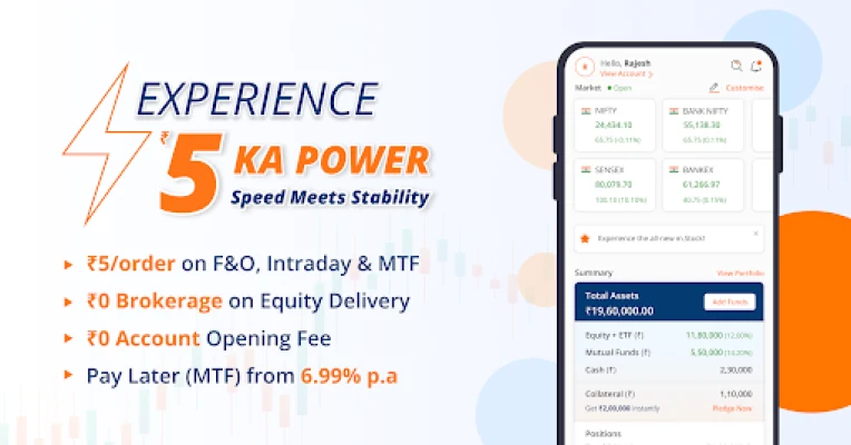 mStock மூலம் பங்குகள், மியூச்சுவல் ஃபண்டுகள், IPO மற்றும் ETF-களில் முதலீடு செய்யுங்கள். Mirae Asset-இன் இந்த ஆப் மூலம் டெமேட் கணக்கு திறந்து, மேம்பட்ட வர்த்தக கருவிகள் மற்றும் குறைந்த கட்டணத்துடன் சந்தையில் வர்த்தகம் செய்யுங்கள். பங்குகள் டெலிவரி, மியூச்சுவல் ஃபண்டுகள் மற்றும் IPO முதலீடுகளுக்கு ஜீரோ புரோக்கரேஜ்.