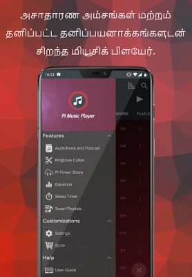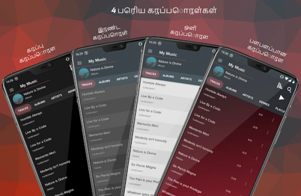 மேம்படுத்தப்பட்ட அடைவு பார்வை மூலம் உங்கள் அனைத்து இசை கோப்புகளையும் எளிதாக ஆராயுங்கள். ஸ்லீப் டைமர், விளையாடும்போது பாடல்களை மாற்றும் ஸ்வைப் வசதி மற்றும் ட்ராக்குகள், ஆல்பங்கள், கலைஞர்கள், வகைகளைப் பற்றிய மெட்டாடேட்டாவைத் திருத்தும் திறன் ஆகியவை தடையற்ற அனுபவத்திற்கு வழிவகுக்கின்றன. பளபளப்பான, ஒளி மற்றும் இருள் என மூன்று முக்கிய கருப்பொருள்களுடன், உங்கள் ரசனைக்கேற்ப தனிப்பயனாக்குங்கள். கூடுதலாக, பளபளப்பான தீமிற்கு 25 அற்புதமான பின்னணிகளைப் பெற்று, முழுத்திரை ஆல்பம் கலை மற்றும் பூட்டுத் திரை கட்டுப்பாடுகளுடன் இசையில் முழுமையாக மூழ்கிவிடுங்கள்.