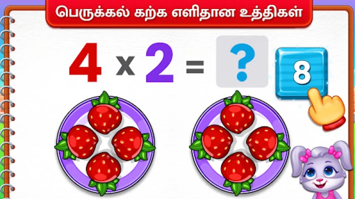 "பெருக்கல் கிட்ஸ்" பலவிதமான புதுமையான கற்றல் முறைகளை வழங்குகிறது. 'எப்போதும் கூட்டல்' மூலம் பெருக்கல் என்பது மீண்டும் மீண்டும் கூட்டலின் எளிமையான வடிவம் என்பதை குழந்தைகள் புரிந்துகொள்வார்கள். 'பார்க்கவும் பெருக்கவும்' விளையாட்டு, வண்ணமயமான படங்களுடன் காட்சி வழி கற்றலை எளிதாக்குகிறது. 'ஃப்ளவர் டைம்ஸ் டேபிள்' ஒரு படைப்பு அணுகுமுறையில் எண்களின் அமைப்பைக் காட்டுகிறது, அதேசமயம் பழமையான 'சீனக் குச்சி முறை' போன்ற தனித்துவமான நுட்பங்கள் கணிதத்தைக் கற்க புதிய வழிகளைத் திறக்கின்றன. தினசரி பயிற்சிக்கான ஃபிளாஷ் கார்டுகள் மற்றும் பல்வேறு நிலைகளில் வினாடி வினாக்கள், கற்றதை உறுதிப்படுத்த உதவுகின்றன.