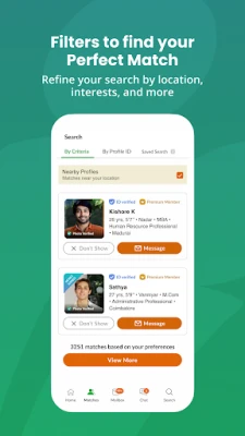 உங்கள் வாழ்க்கைத் துணையைத் தேடும் பயணத்தில், தமிழ் மேட்ரிமோனி தளமானது பல தனித்துவமான அம்சங்களை வழங்குகிறது. உங்கள் சுயவிவரத்தை எளிதாக உருவாக்கி, லட்சக்கணக்கான வரன்களை நிதானமாக ஆராயலாம். எங்களின் சக்திவாய்ந்த MIMA™ செயற்கை நுண்ணறிவு தொழில்நுட்பம், உங்களுக்கான சரியான பொருத்தங்களை அடையாளம் காண உதவுகிறது. நகரம், கல்வித் தகுதி, தொழில் போன்ற மேம்பட்ட வடிகட்டிகள் மூலம், உங்கள் தேடலைத் துல்லியமாக்கி, நீங்கள் விரும்பும் துணையை விரைவாகக் கண்டறியலாம். பிரீமியம் உறுப்பினர்களுக்கு, பாதுகாப்பான உடனடி அரட்டை மற்றும் குரல் அழைப்பு வசதி, Matrimony.com-ஆல் சரிபார்க்கப்பட்ட 'பிரைம்' சுயவிவரங்களுக்கான அணுகல் மற்றும் உங்கள் சுயவிவரத்திற்கான அதிக வெளிப்படைத்தன்மை ஆகியவை கிடைக்கின்றன. உங்கள் தனியுரிமைக்கும் பாதுகாப்பிற்கும் நாங்கள் முன்னுரிமை அளிக்கிறோம்; SecureConnect® அம்சம் மூலம் உங்கள் மொபைல் எண்ணை வெளிப்படுத்தாமலேயே வரன்களுடன் பேச முடியும்.