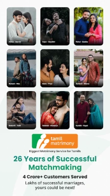 தமிழ் மேட்ரிமோனி, உலகெங்கிலும் உள்ள தமிழர்களுக்கான தலைசிறந்த வாழ்வுத் துணை தேடும் தளம். உங்கள் கனவுத் துணையைத் தேடி, ஒரு புதிய அத்தியாயத்தைத் தொடங்க இது ஒரு நம்பகமான வழியாகும். தமிழை தங்கள் தாய்மொழியாகக் கொண்டவர்களுக்கு, இந்தத் தளம் இப்போது முழுமையாகத் தமிழிலேயே இயங்குவதால், வரன் தேடும் அனுபவம் மேலும் எளிமையாகிறது. தினசரி ஆயிரக்கணக்கான புதிய சுயவிவரங்கள் இணைய, லட்சக்கணக்கான பொருத்தமான வரன்களிலிருந்து உங்களின் எதிர்பார்ப்புகளுக்கு ஏற்ற துணையை நீங்கள் கண்டறியலாம். உலகம் முழுவதும் பரவியுள்ள தமிழர்களுடன் இணையும் வாய்ப்பை தமிழ் மேட்ரிமோனி வழங்குகிறது.