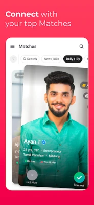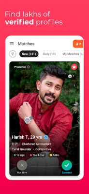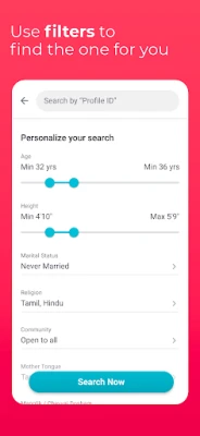 தமிழ்ஷாதி, இந்தியாவின் நம்பகமான திருமண ஆப். ஷாதி லைவ் மூலம் ஒரு மணி நேரத்தில் 10 பொருத்தங்களைக் கண்டு, வீடியோ அழைப்பில் சந்தியுங்கள். பிராமணர், நாடார், வன்னியர், செட்டியார் போன்ற சமூகங்களில் வாழ்க்கைத் துணையைக் கண்டறியுங்கள். லட்சக்கணக்கான வெற்றிக் கதைகளுடன், தமிழர்களுக்கான சிறந்த மேட்ரிமோனி சேவை.